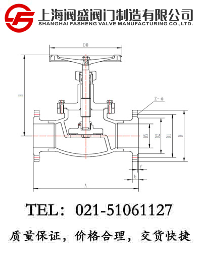 J41F-25P 常溫截止閥外型尺寸與連接尺寸