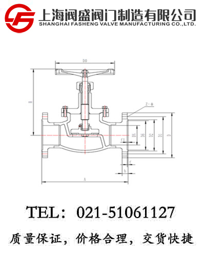 J41F-40P 常溫截止閥外型尺寸與連接尺寸
