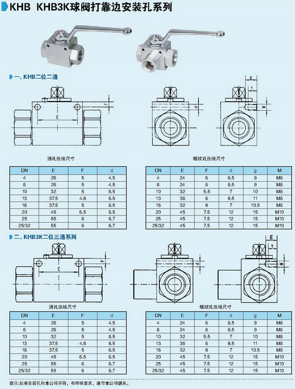 >> KHB KHB3K球閥打靠邊安裝孔系列