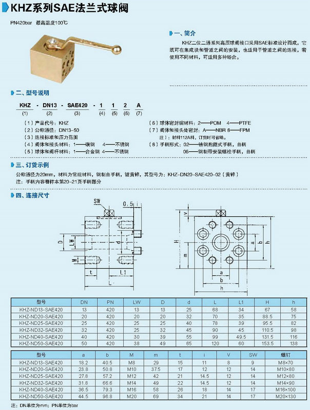 KHZ系列SEA法蘭式球閥技術(shù)參數(shù)
