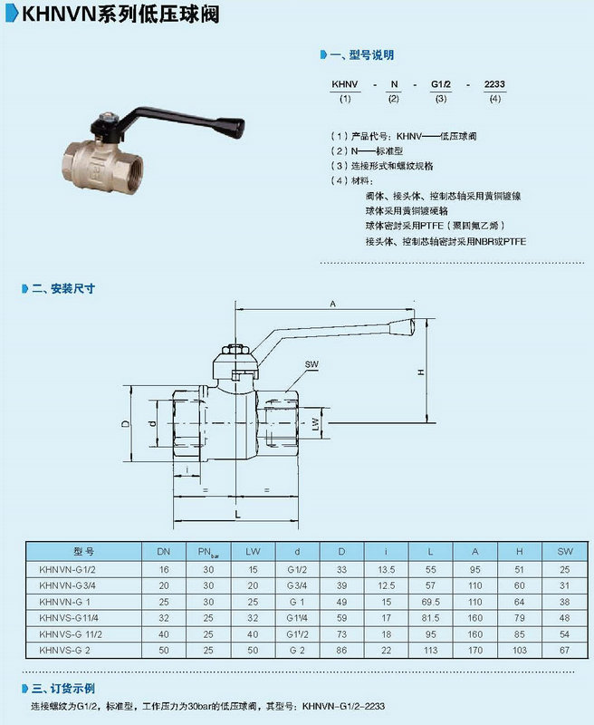 KHNVN系列低壓球閥技術(shù)參數(shù)