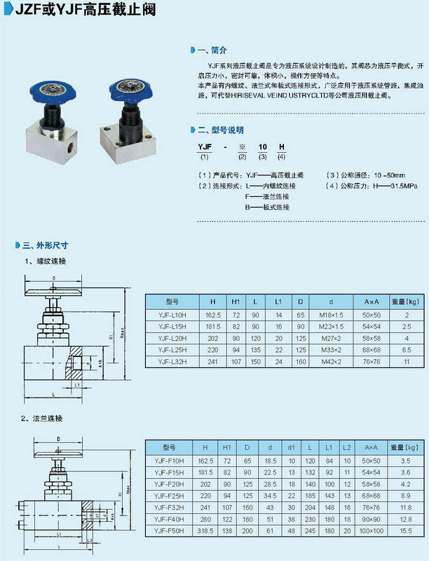 JZF YJF系列高壓截止閥技術參數(shù)