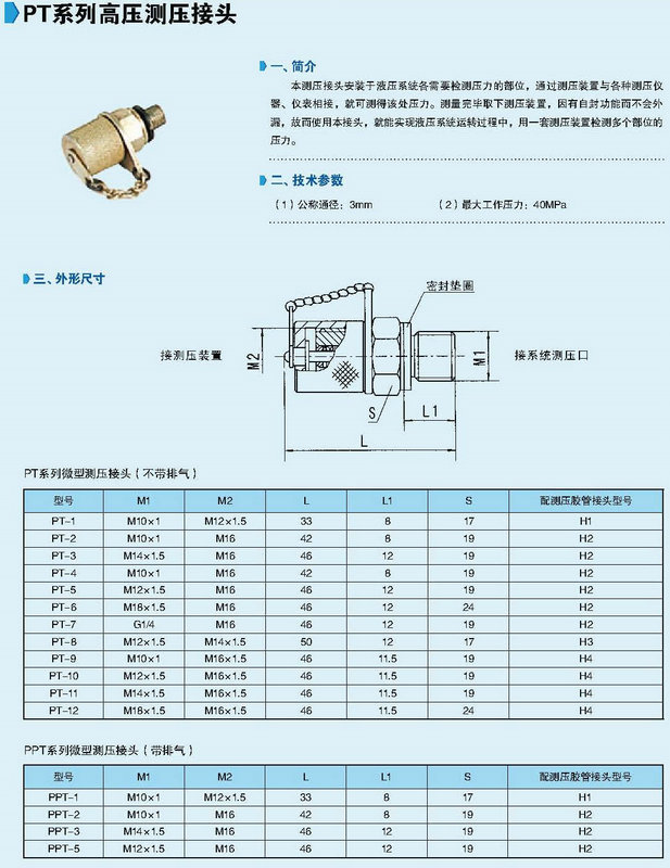 PT系列高壓測壓接頭技術(shù)參數(shù)