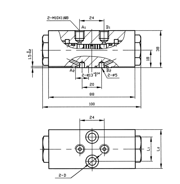 YS6型雙向液壓鎖圖形符號(hào)  YS6型雙向液壓鎖技術(shù)參數(shù)公稱壓力:32Mpa 公稱通徑:6mm 額定流量:25L/min 適用介質(zhì):液壓油 YS6型雙向液壓鎖外形尺寸